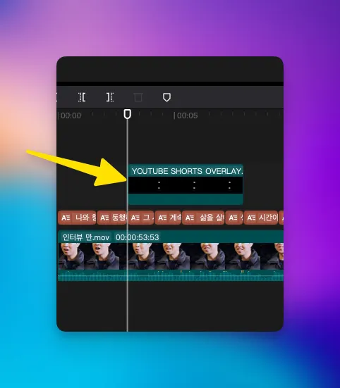 영상 맨 위에 두고 편집 한 후에 “V” 를 눌러서 비활성화 한 다음 영상을 출력하면 된다.