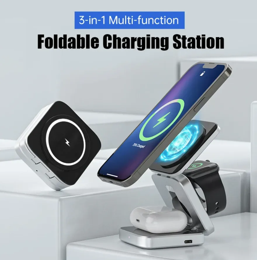 휴대용 접이식 무선 충전기 스탠드 독, 아이폰 14, 13 홀더, 애플 워치 S8 용 마그네틱 고속 충전 스테이션, 3 in 1