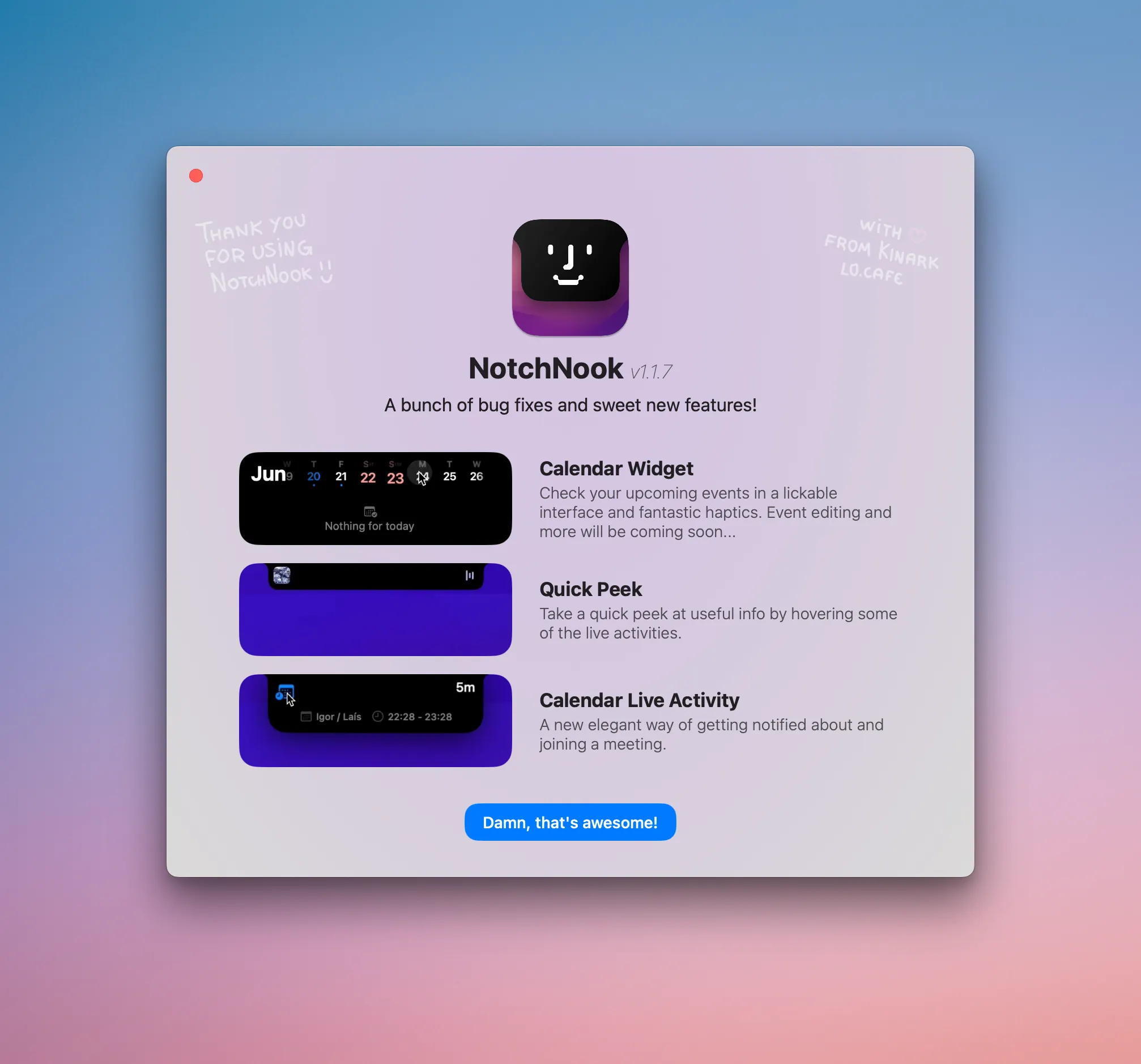 두 앱을 비교하자면 당연 노치누크를 유료로 사용하고 싶을 정도로 앱의 만듬새가 좋고 맥북에서 다이나믹 아일랜드를 사용하는 감각이 좋게 느껴진다. 하지만 월 구독료를 월 3달러를 내거나 평생소장용 35$를 내면 된다.