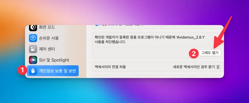 시스템 환경설정→개인정보 보호 및 보안 → 그래도 열기 해주세요.