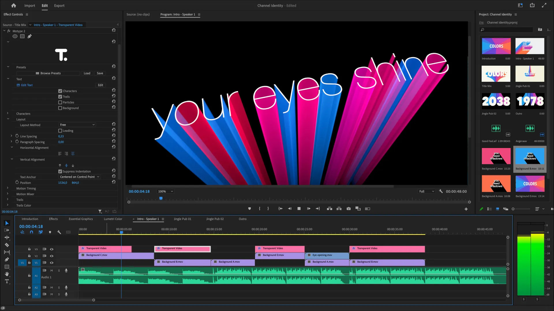 Quickly set the mood of your channel identity, commercials, TV Shows or opening/closing titles.