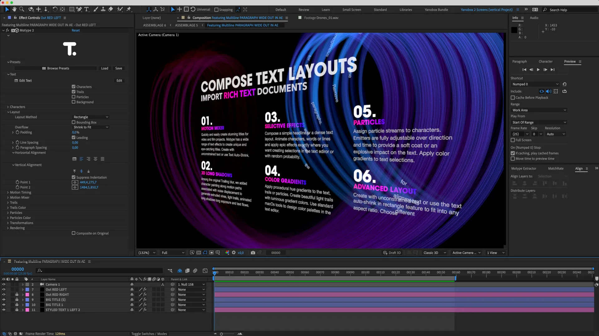 Access a real-time text animation library with superb support for Mercury Engine GPU acceleration.