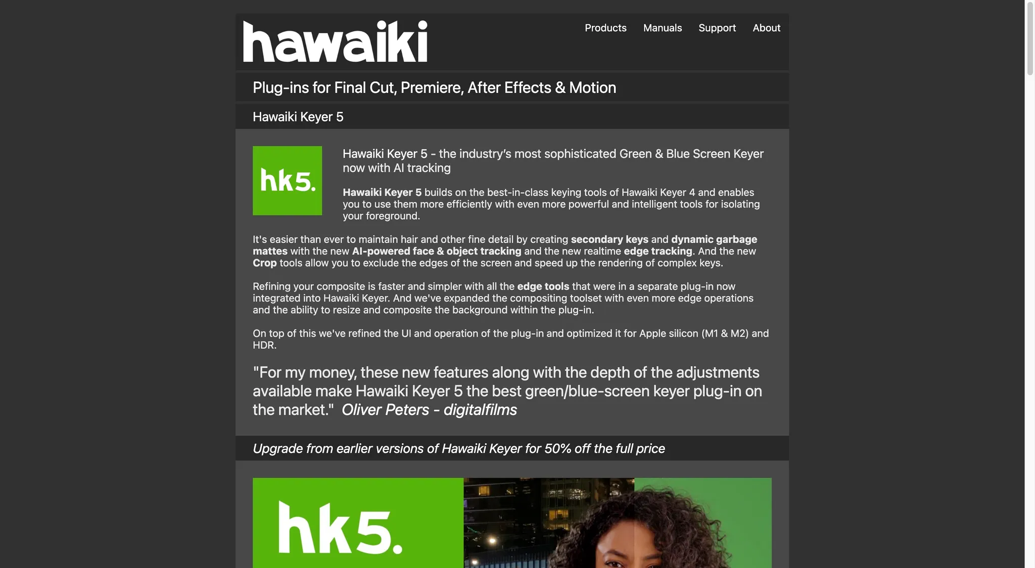 "For my money, these new features along with the depth of the adjustments available make Hawaiki Keyer 5 the best green/blue-screen keyer plug-in on the market." Oliver Peters - digitalfilms