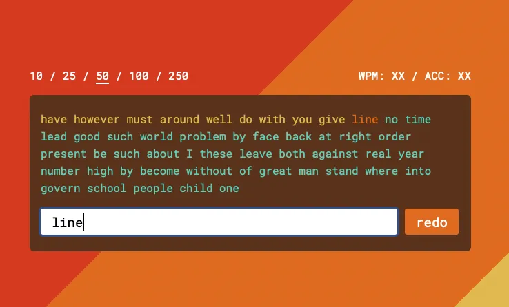 타이핑스는 기본적으로 단어10 부터 250개 까지 선택하여 연습을 시작할 수 있다