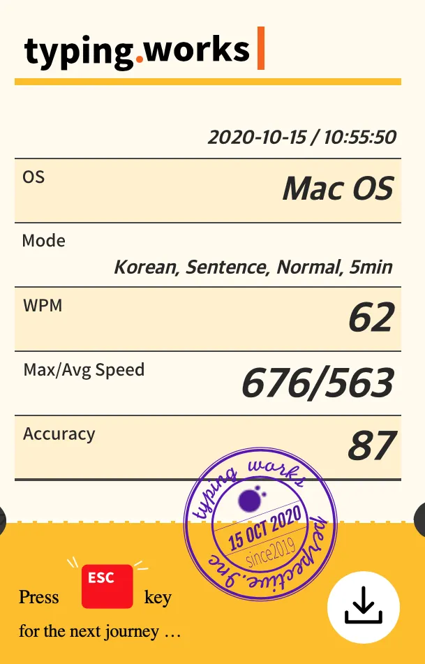 속도와 정확도 횟수가 기본적으로 표시된다.